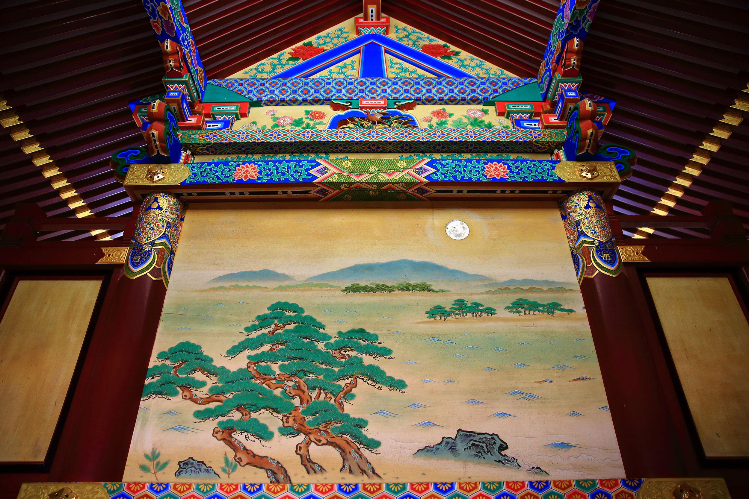 元和7年(1621)、頼宣公が父家康公を祀る社として、地主神でもある和歌浦天満宮の隣に造営。社殿は権現造りで「関西の日光」とも呼ばれます。国の重要文化財にも指定されており、左甚五郎の彫刻や狩野探幽の壁画も所蔵しています。天神山に天満宮、権現山に東照宮が並び建つ様は、和歌の浦の代表的な景観のひとつです。