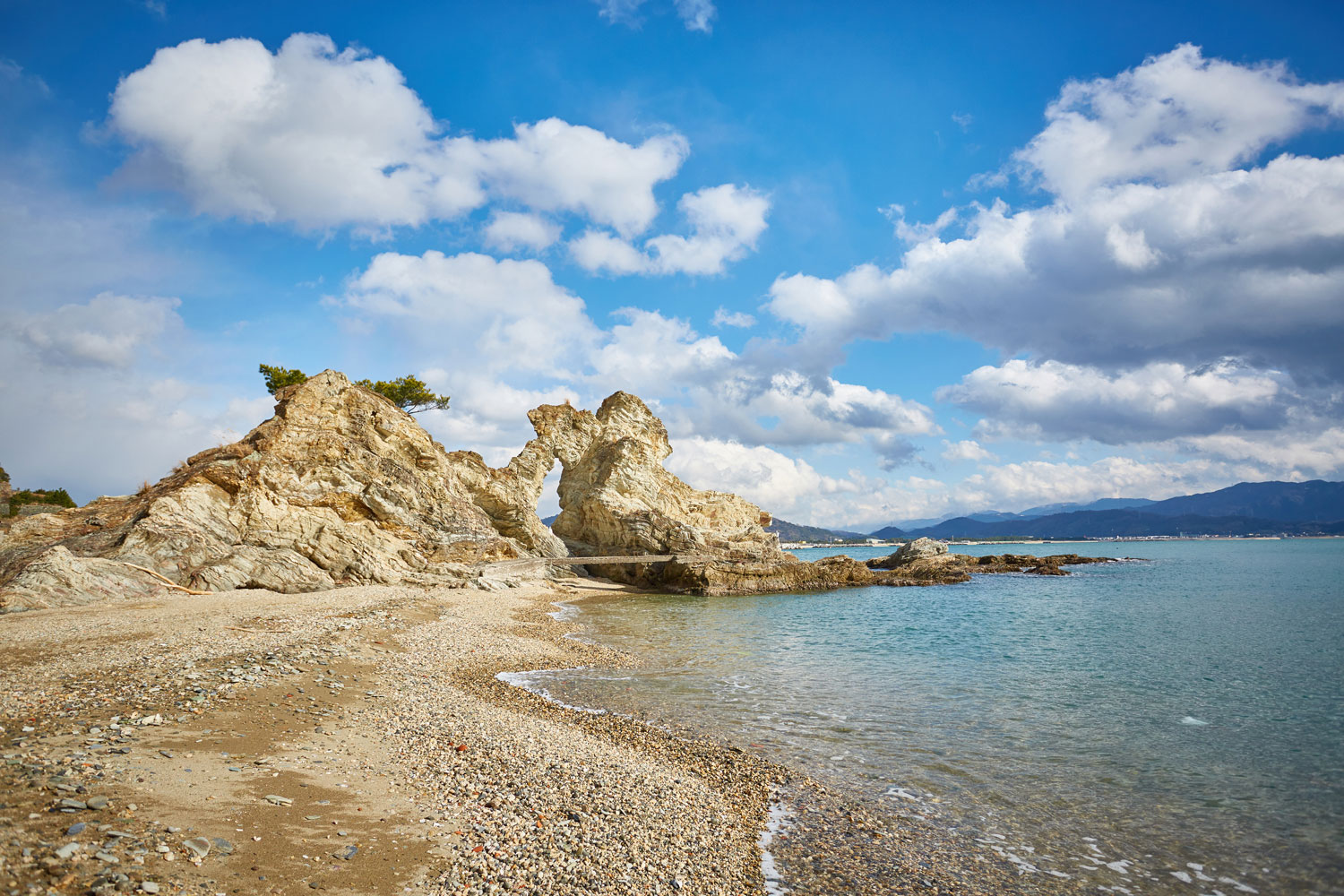 現在はコンクリートで再建されていますが、元は初代紀州藩主・頼宣が建てた木造の水上楼閣。東には名草山が控え、和歌の浦の水面に美しい姿を映します。ここから眺める名草山に上る仲秋の名月は、和歌の浦の絶景のひとつともいわれています。春には紀三井寺の桜も目に美しく、四季折々の風景を楽しむことができます。