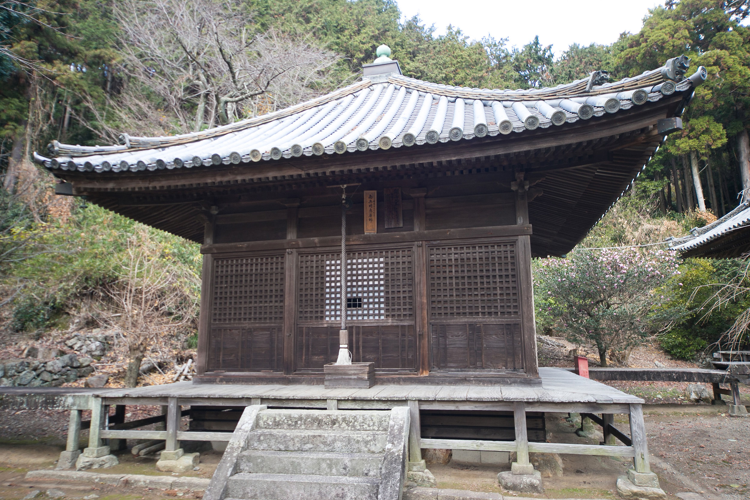 西白上遺跡などがある山に建つ施無畏寺。梶尾山高山寺に次ぐ明恵上人の霊場で、創建当時の古文書も