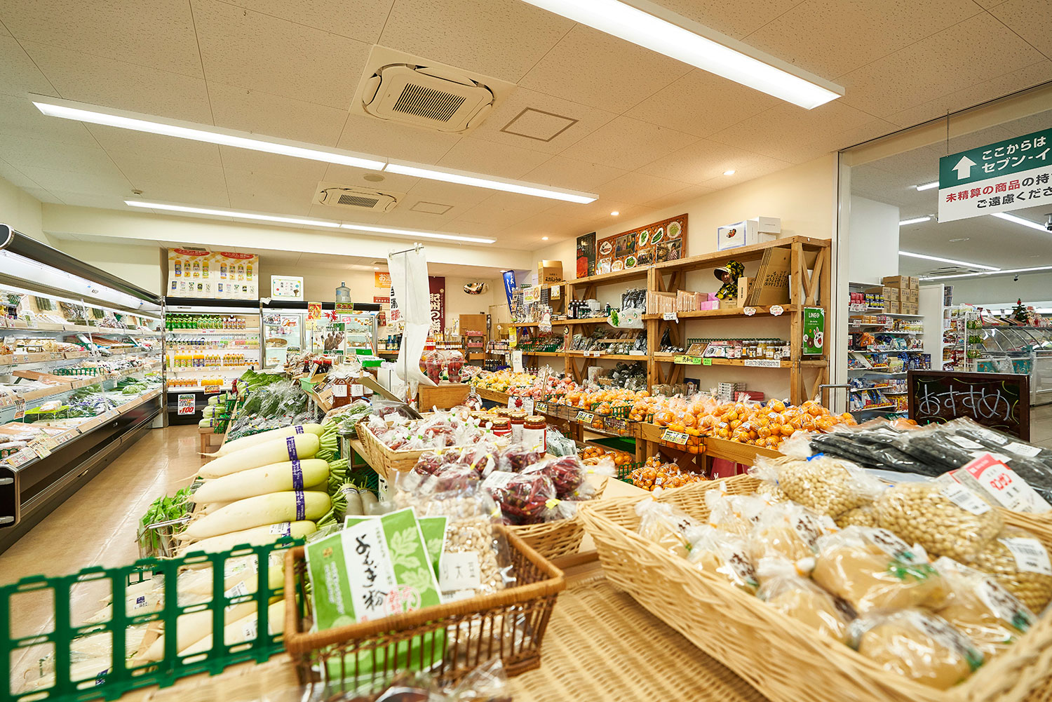 由良町、日高町、美浜町などから250軒を超える農家が作物を持ち込む直売場。ミカンや柿、梅などの紀州の名産品に加え、日高町が誇るトマトやウスイエンドウなどの野菜、花や黒竹製品なども格安で販売しています。