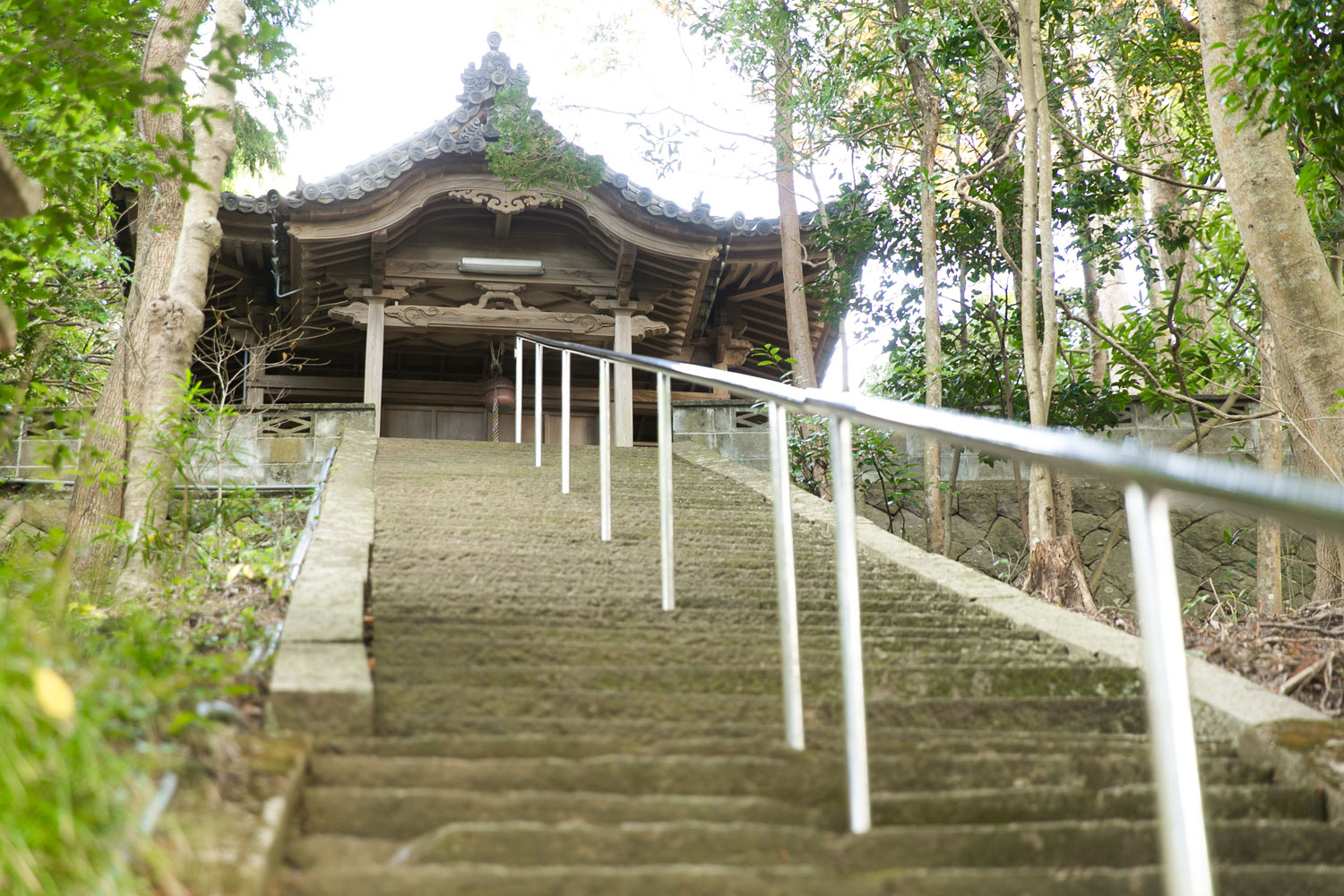 山腹に鎮座する木本八幡宮は凛とした佇まい
